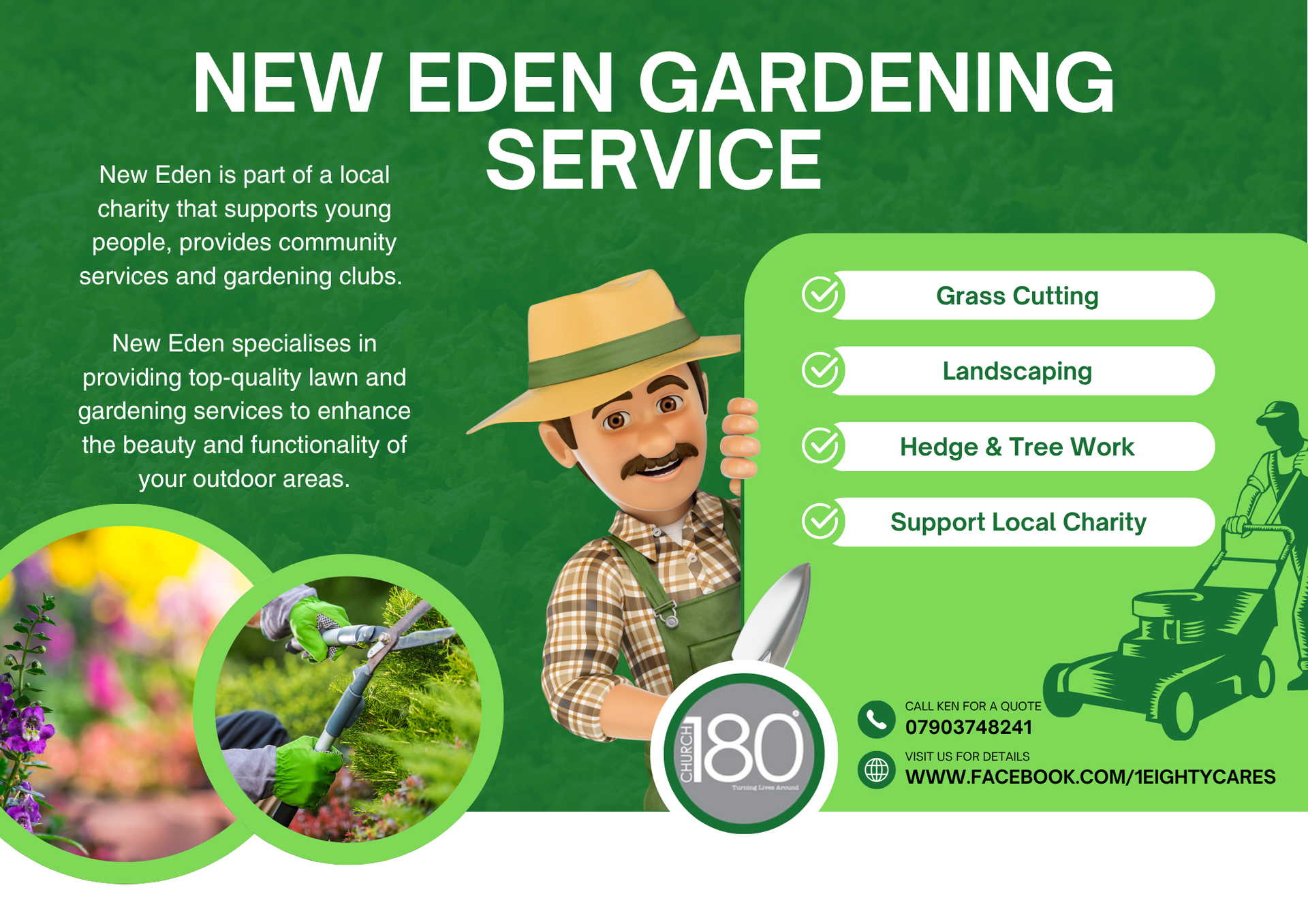 Ken also offers a Home Gardening Service to customers all over the surrounding area. With his staff team of Young Adults and Work Coaches they transform gardens, maintain lawns, offer tree and hedge work as well as landscaping. Contact Ken today to find out more!